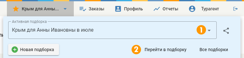 Активная подборка или рабочая – это подборка, в которую вы «сейчас» добавляете нужные объекты и туры.