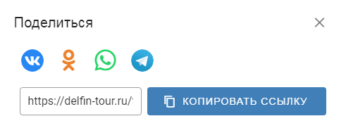 - Возможность отправки туристу подборки на почту, мессенджер, соцсеть