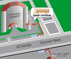 08:00 Сбор группы в Москве: ст. метро "ВДНХ", стоянка справа от гостиницы "Космос". (в пути около 2,5 часов – 130 км). Точное место, время сбора и контактный телефон гида/координатора необходимо уточнять за 1 день до начала тура на сайте в разделе "Выезд/прибытие".